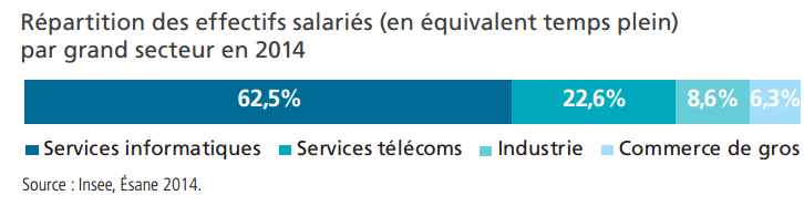 Notons que la valeur ajoutée par les services TIC représentait 3,60 % du PIB en 2014. Un ratio supérieur à celui observé en Espagne (3,1 %) ou en Italie (3 %), mais inférieur à celui de l’Allemagne (3,8 %).