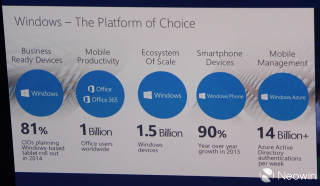 Dans le même élan, celui-ci a affirmé que 81 % des DSI envisagent de déployer une tablette sous Windows en 2014, ce qui représente une grande opportunité pour Microsoft et ses partenaires de vendre des tablettes sous l’OS au cours de cette année.