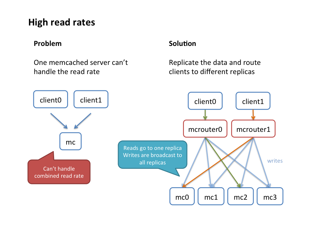 « La plupart des services web débutent comme un ensemble de serveurs d’application front-end couplés aux bases de données utilisées pour gérer le stockage des données. A mesure qu’elles grandissent, les bases de données sont complétées par des caches pour stocker des pièces de données qui sont lues fréquemment afin d’améliorer la performance du site. Souvent, la capacité à accéder rapidement aux données cesse d’être considérée comme une optimisation pour devenir une exigence pour le site », expliquent Anton Likhtarov, Rajesh Nishtala et Ryan McElroy, des ingénieurs Facebook.