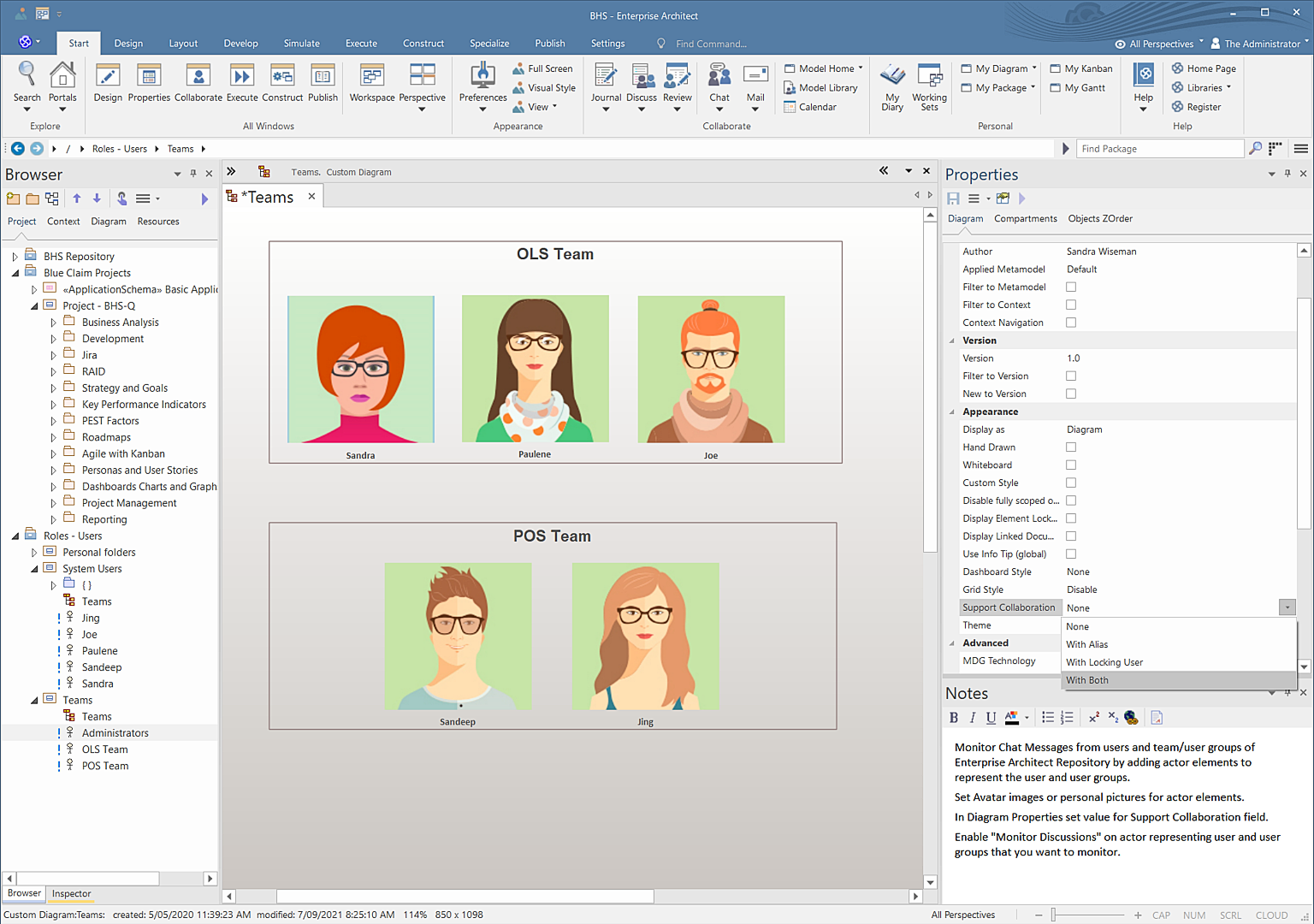 Avec des fonctionnalités de contrôle de version étroitement intégrées et des serveurs déployables basés sur le cloud, Enterprise Architect permet également aux équipes globalement distribuées de collaborer efficacement aux projets partagés.